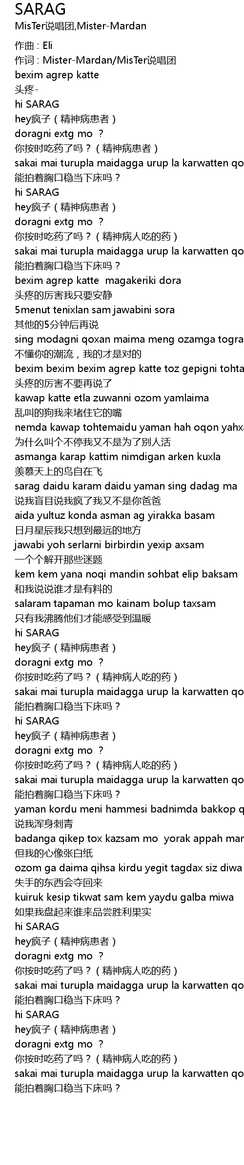 | 作词 : Mister-Mardan/MisTer说唱团 | |