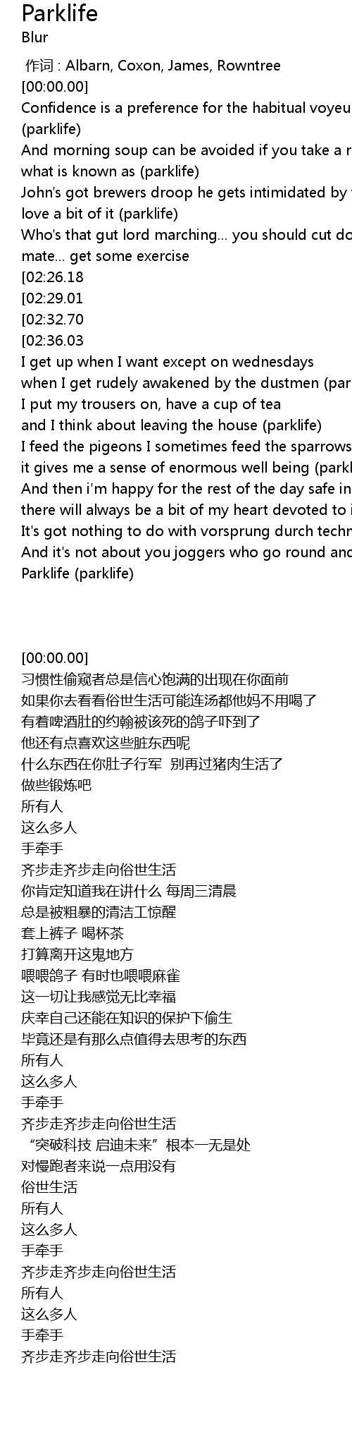 | [02:23.39] | Parklife parklife |