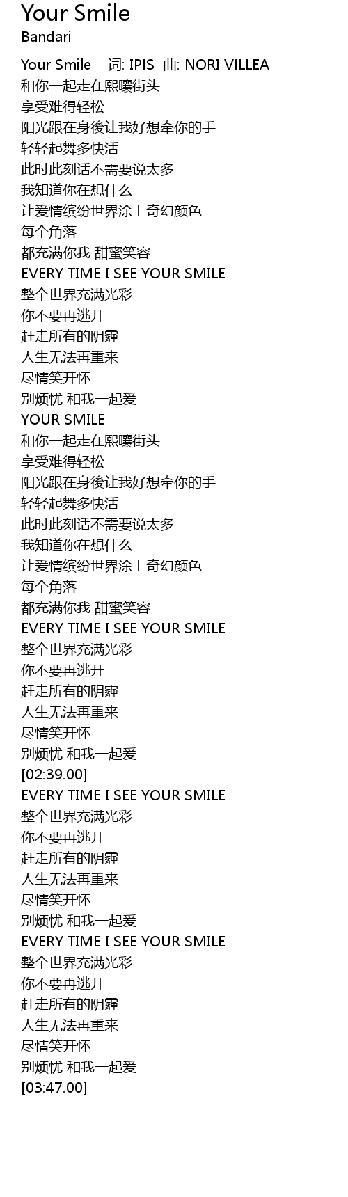 | [02:57.00] | EVERY TIME I SEE YOUR SMILE |