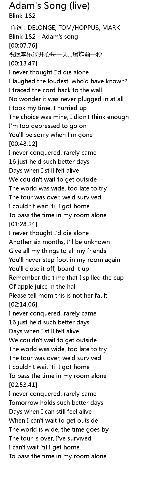 | [00:03.54] | Blink-182 - Adam's song |