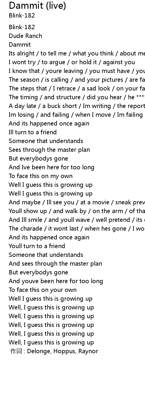| [00:00.00] | 作词 : Delonge, Hoppus, Raynor |