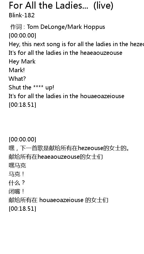 | [00:15.20] | It's for all the ladies in the houaeoazeiouse |