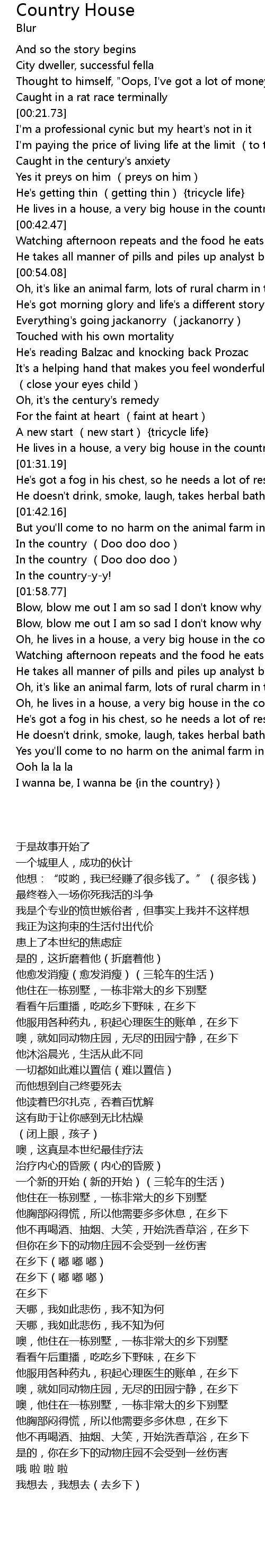 | [03:30.09] | I wanna be, I wanna be {in the country}) |