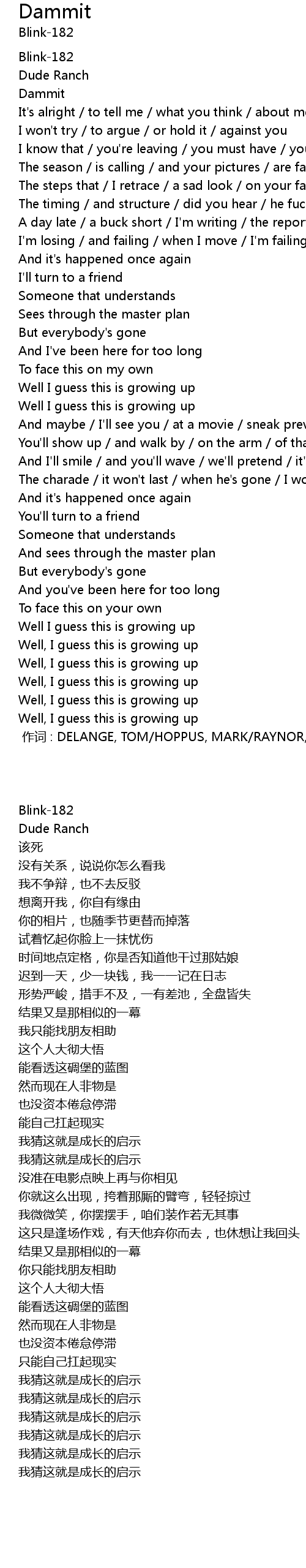 | [00:00.00] | zuò cí : DELANGE, TOM HOPPUS, MARK RAYNOR, SCOTT |