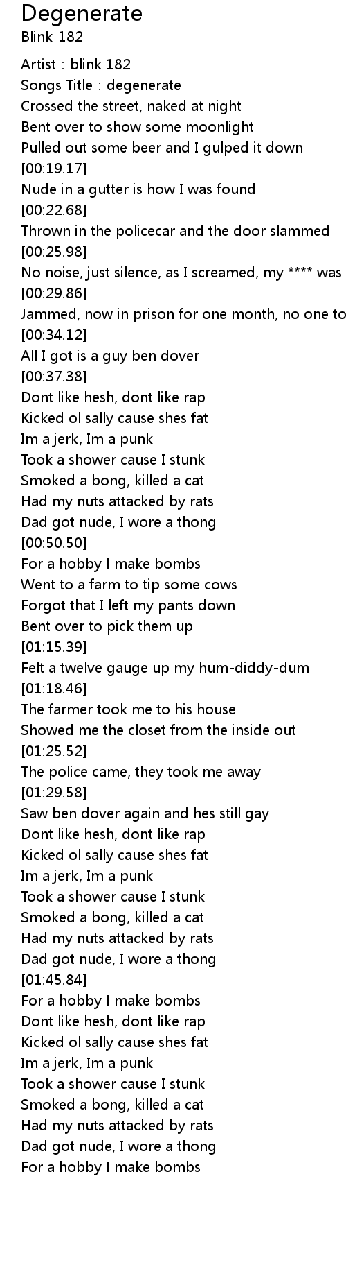| [00:40.25] | Kicked ol sally cause shes fat |