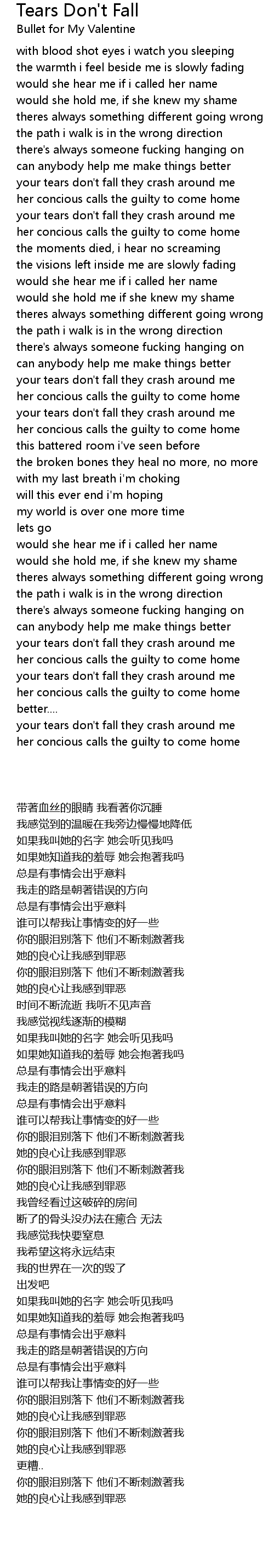 your tears don't fall they crash around me |