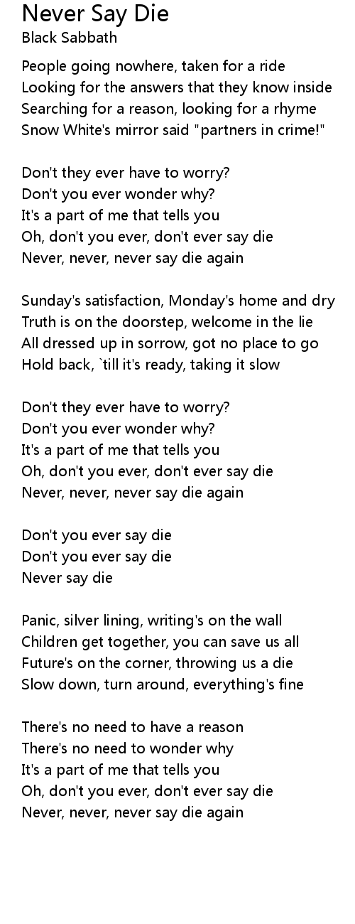 Never say die |