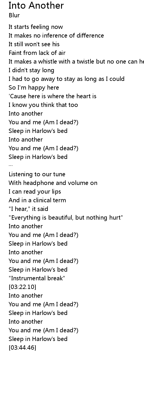 | [03:29.68] | Sleep in Harlow's bed |
