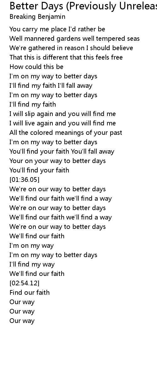 I'm on my way to better days |