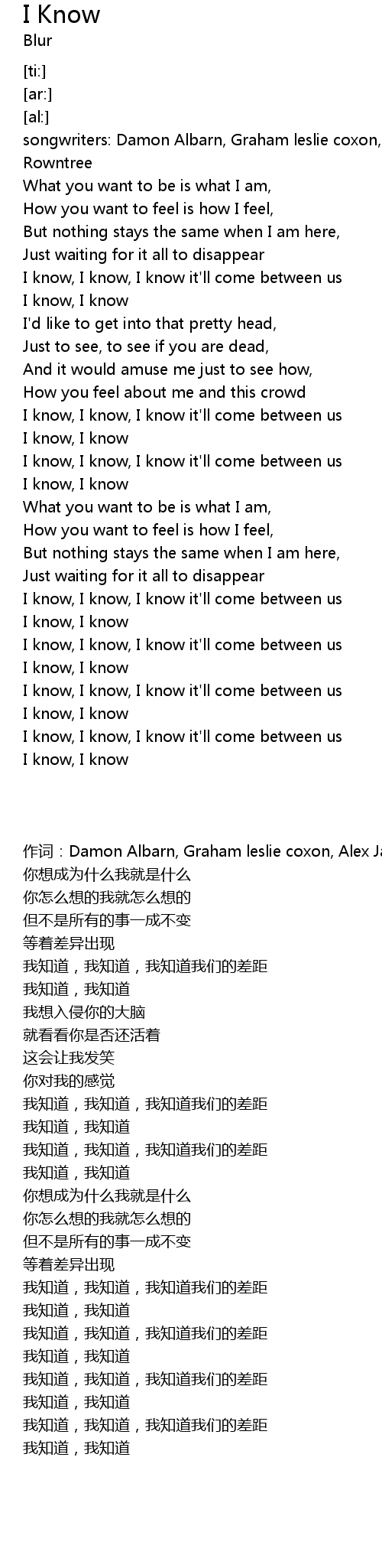 songwriters: Damon Albarn, Graham leslie coxon, Alex James, David Rowntree |