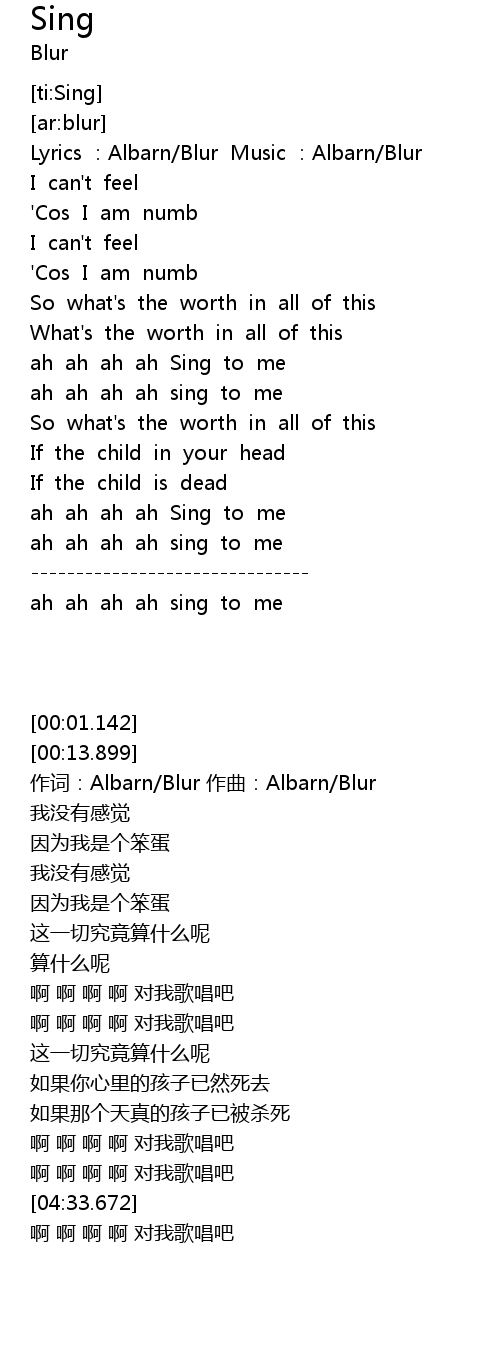 | [00:43.414] | Lyrics :Albarn/Blur Music :Albarn/Blur |