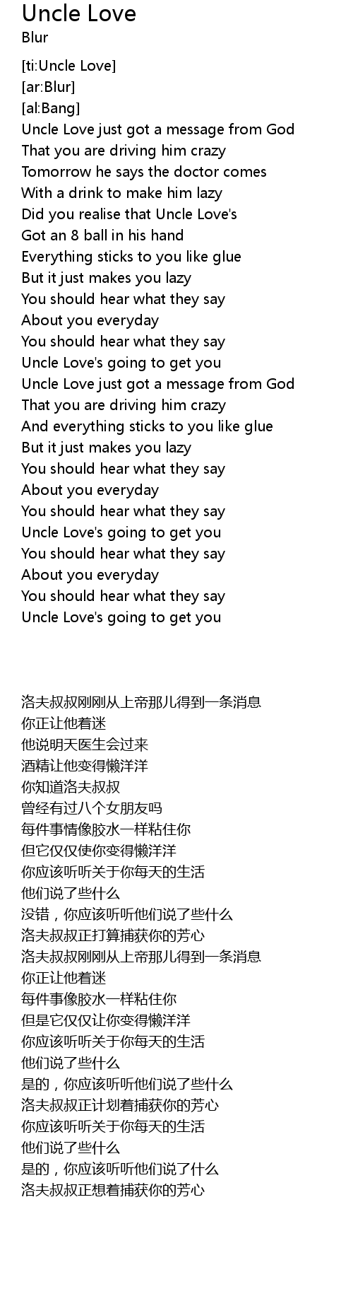 | [00:20.50] | Uncle Love just got a message from God |