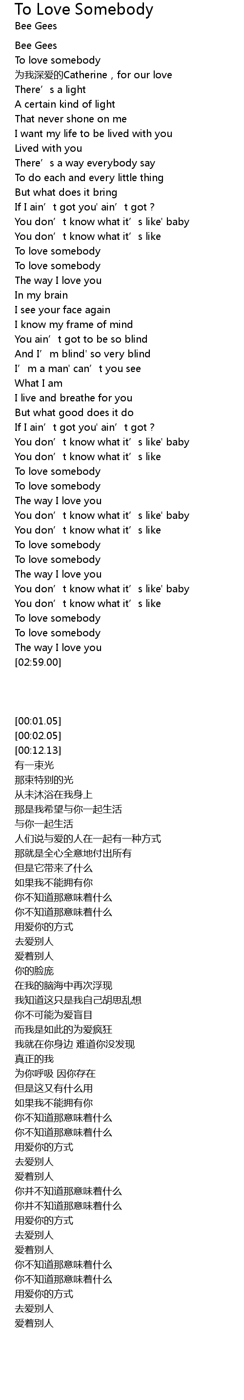 | [01:03.75] | To love somebody |