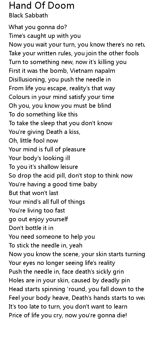 Push the needle in, face death's sickly grin |