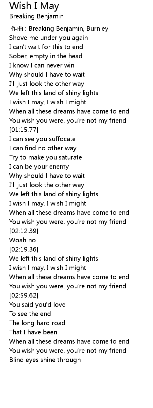 | [00:00.00] | 作曲 : Breaking Benjamin, Burnley |