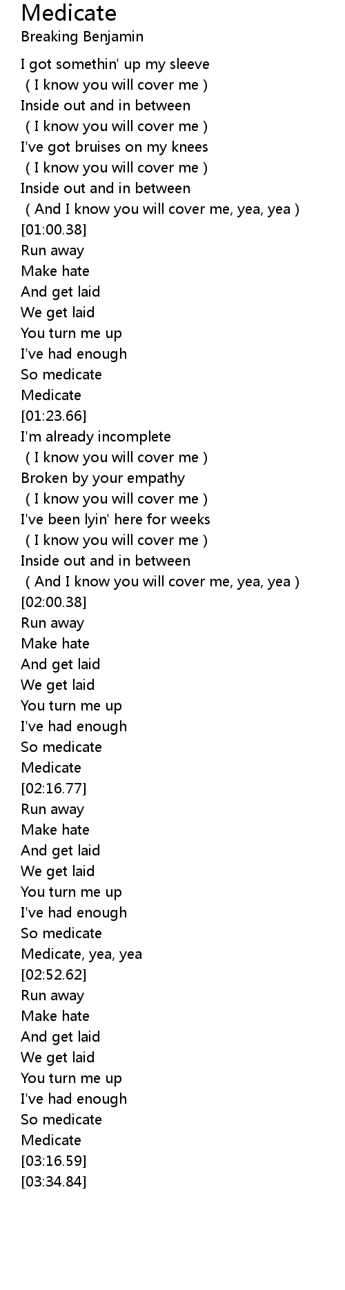 | [01:41.31] | I' ve been lyin' here for weeks |