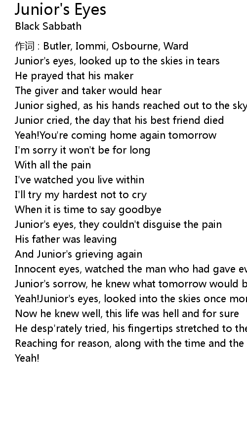 | Yeah! Junior' s eyes, looked into the skies once more | |