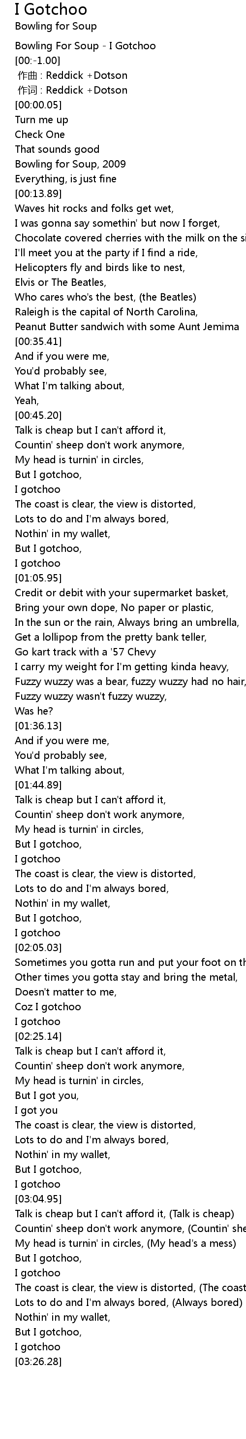 | [00:-2.00] | Bowling For Soup I Gotchoo |