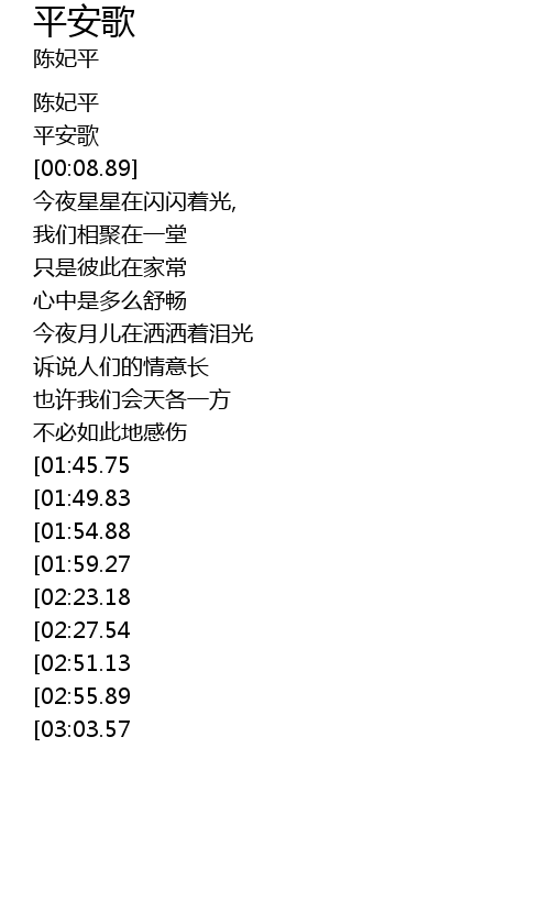 | [02:41.98][02:23.18][01:06.88] | 满天星光闪闪的夜晚 |
