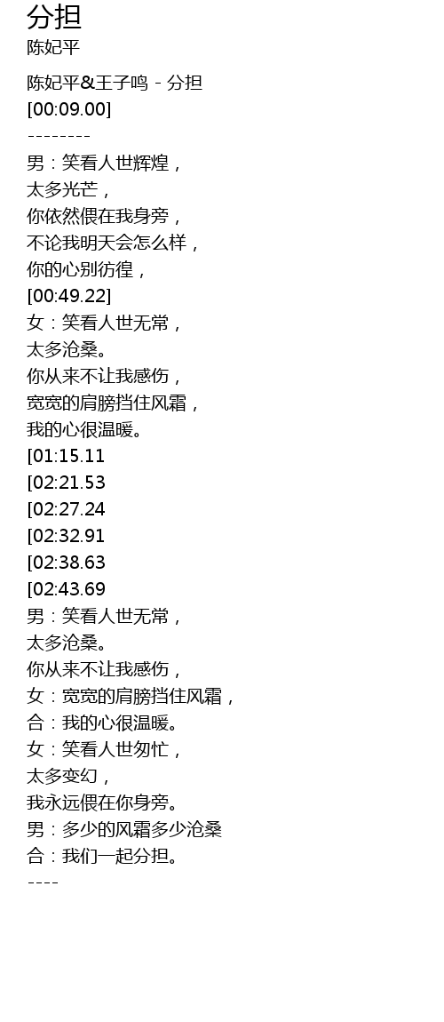 | [00:03.00] | 陈妃平&王子鸣 - 分担 |