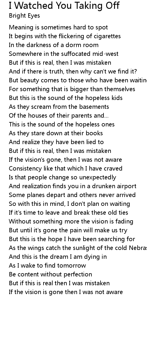 If the vision's gone, then I was not aware |