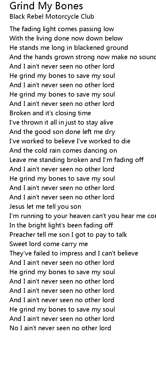He grind my bones to save my soul |