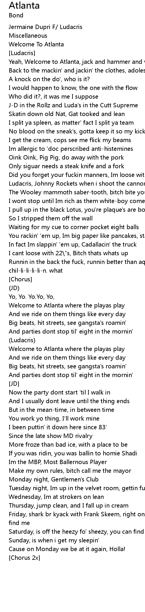 | Yeah, Welcome to Atlanta, jack and hammer and vogues' | |