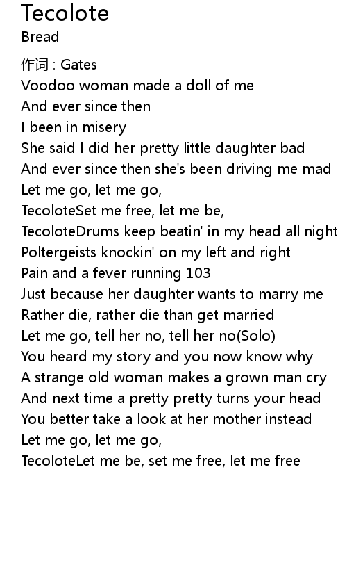 | TecoloteSet me free, let me be, | |