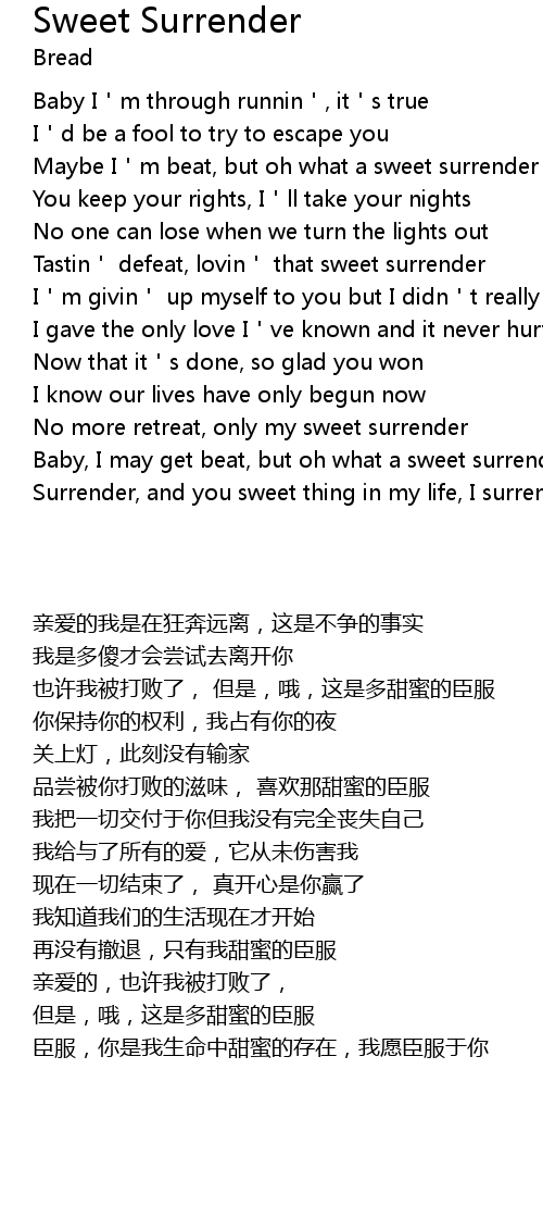 | [01:54] | Baby, I may get beat, but oh what a sweet surrender |