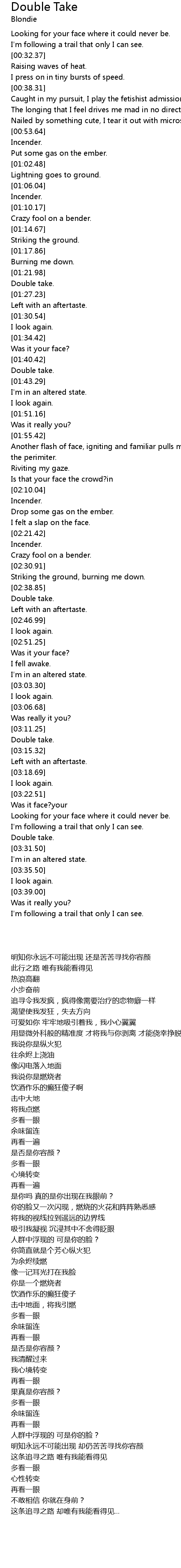 | [01:56.67] | Another flash of face, igniting and familiar pulls me by the eye to the perimiter. |