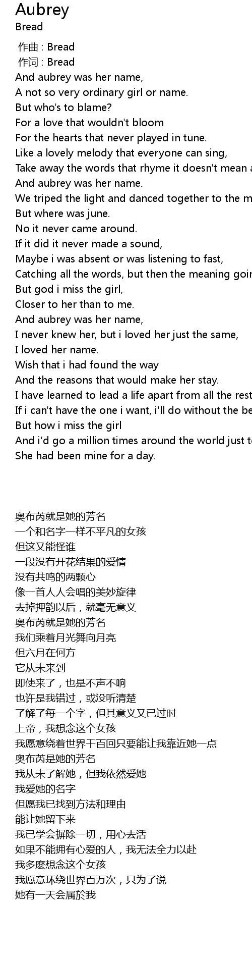 | [02:30.290] | I never knew her, but i loved her just the same, |