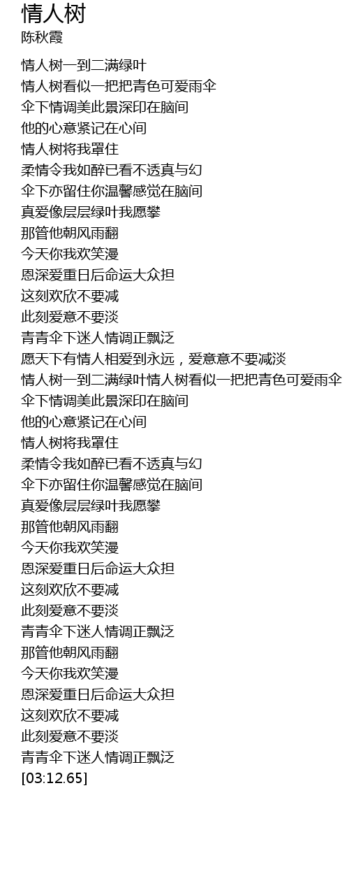 | [02:19.96] | 真爱像层层绿叶我愿攀 |