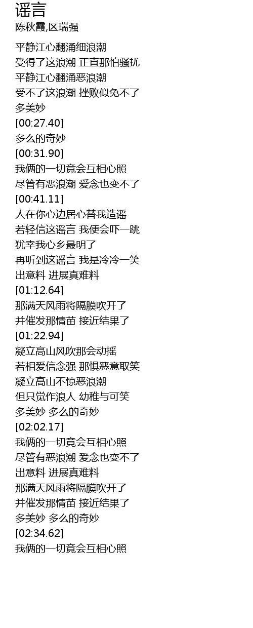 | [01:01.79] | 再听到这谣言 我是冷冷一笑 |