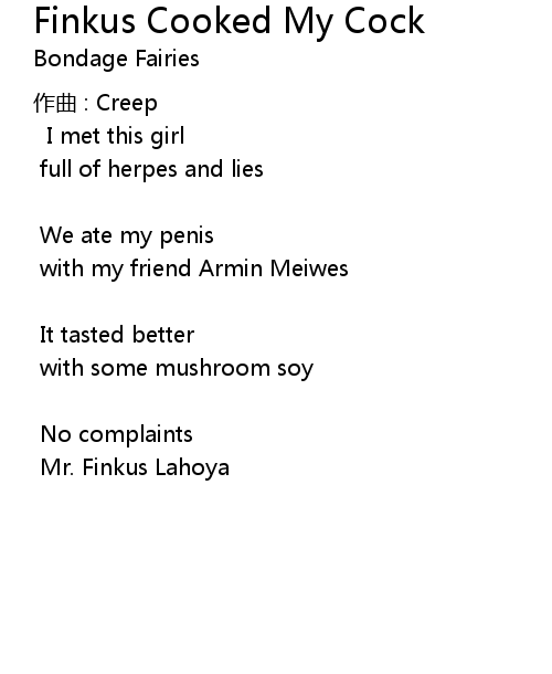 | Song | Finkus Cooked My Cock |