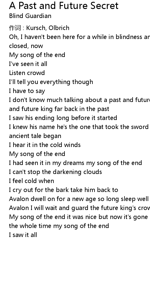 | Song | A Past and Future Secret |