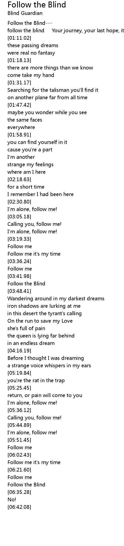 follow the blind Your journey, your last hope, it can begin |
