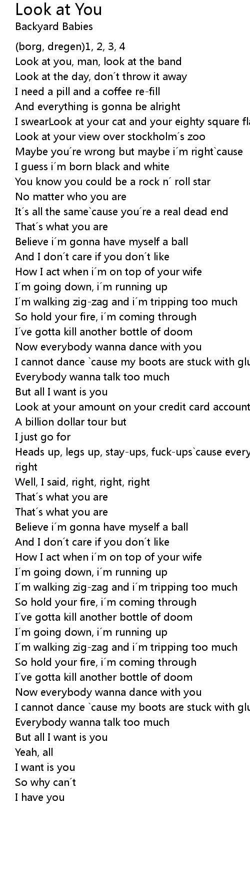 | Heads up, legs up, stay-ups, fuck-ups`cause everything is gonna be alright, right | |