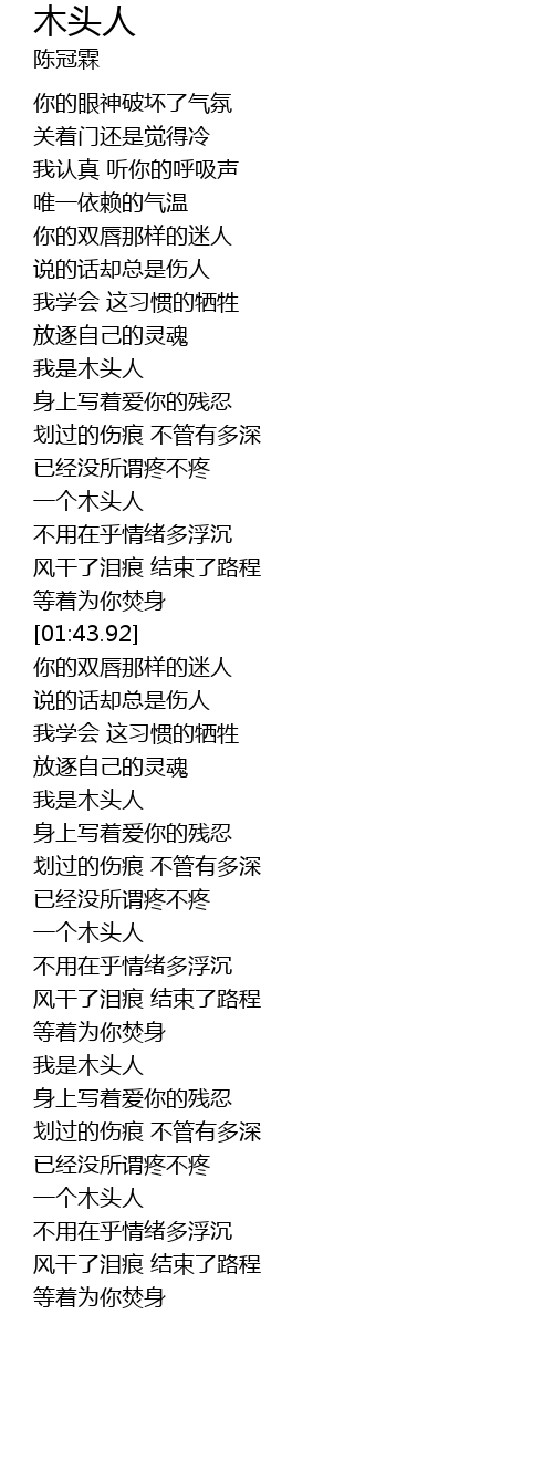 | [01:31.44] | 风干了泪痕 结束了路程 |