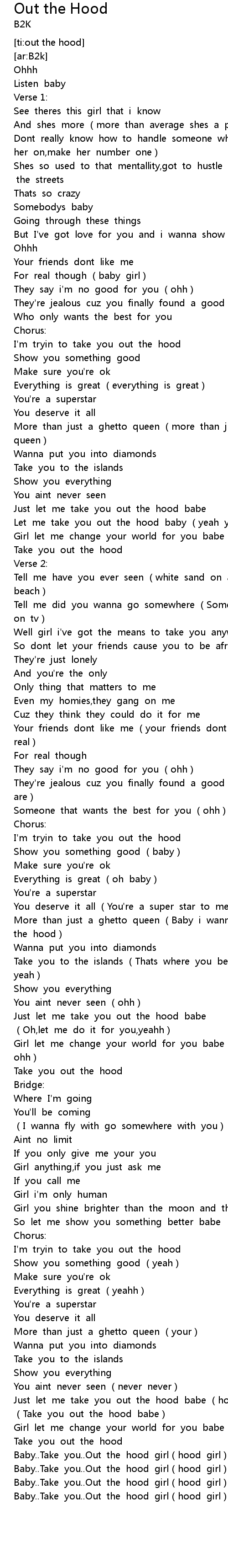 | [04:31.814] | Baby.. Take you.. Out the hood girl hood girl |