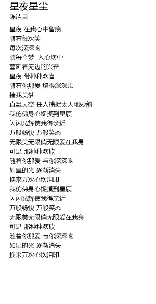 | [00:23.25] | 星夜 在我心中留痕 |