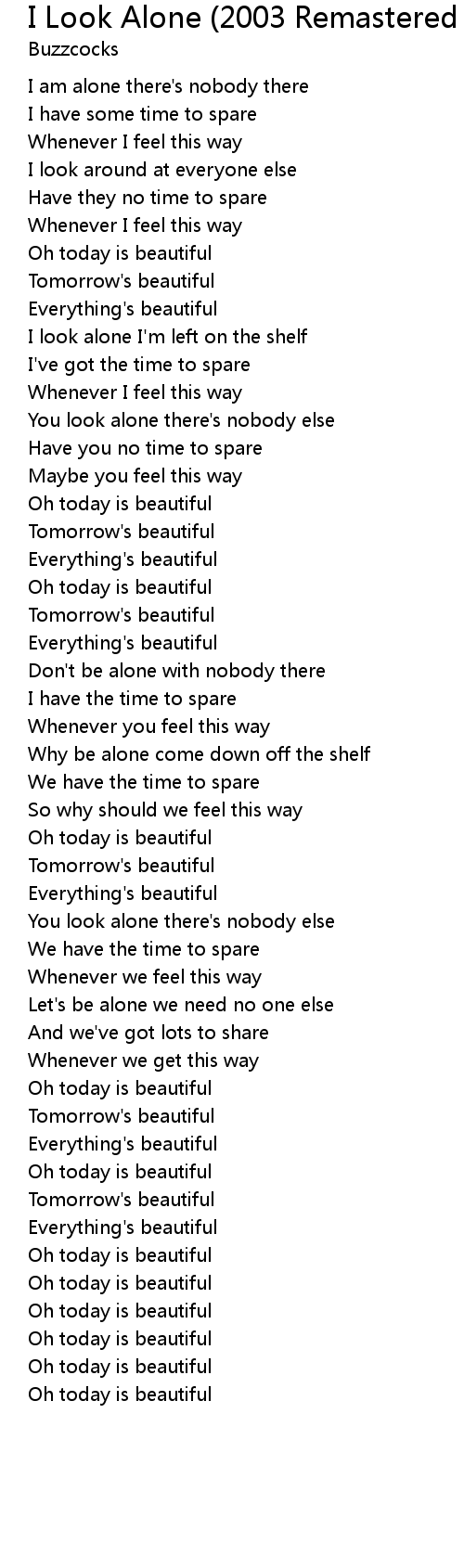 | You look alone there's nobody else | |