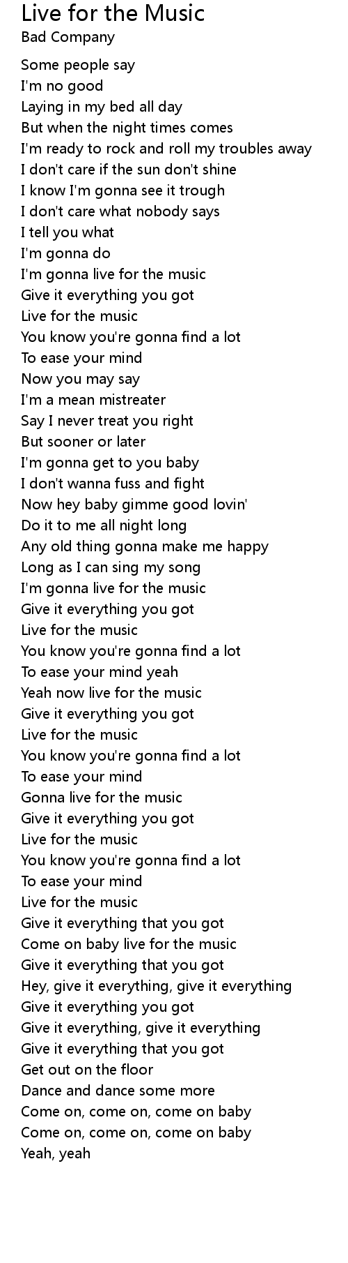 Yeah now live for the music |