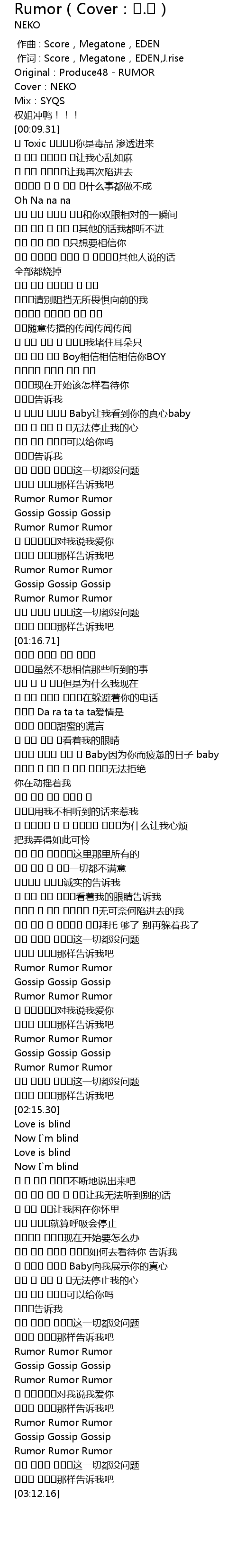 | [00:00.60] | Original:Produce48 - RUMOR |