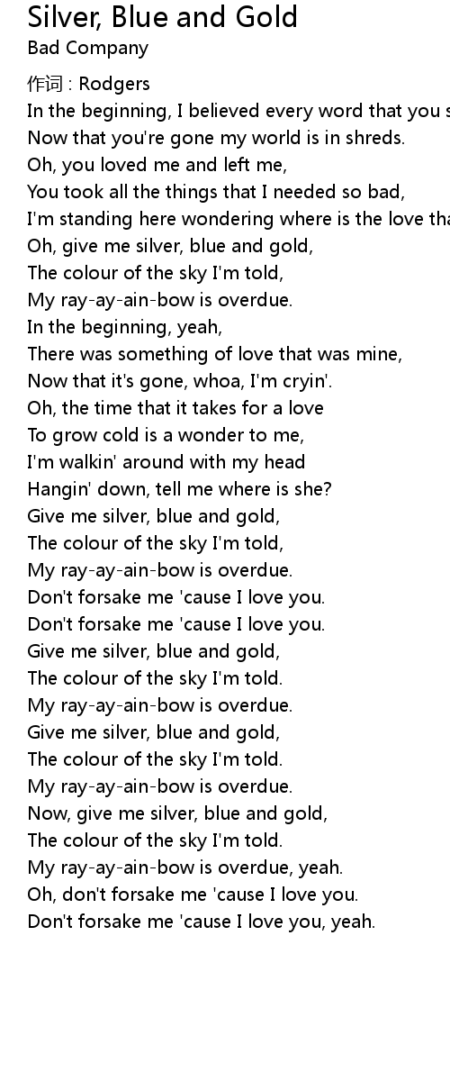 | Give me silver, blue and gold, | |
