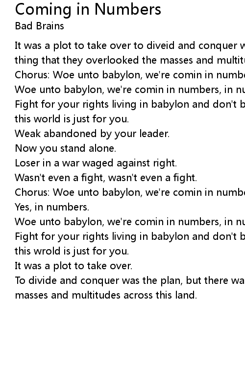 Chorus: Woe unto babylon, we're comin in numbers, in numbers. |