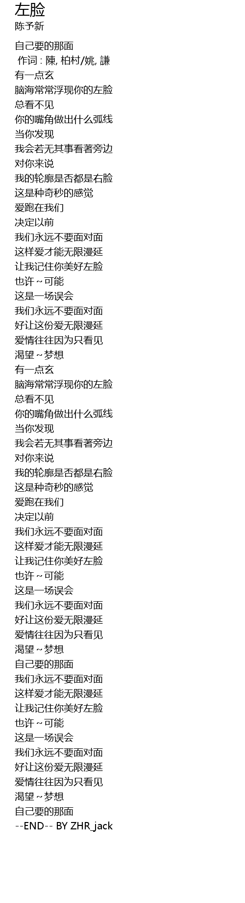 | [00:31.90] | 脑海常常浮现你的左脸 |