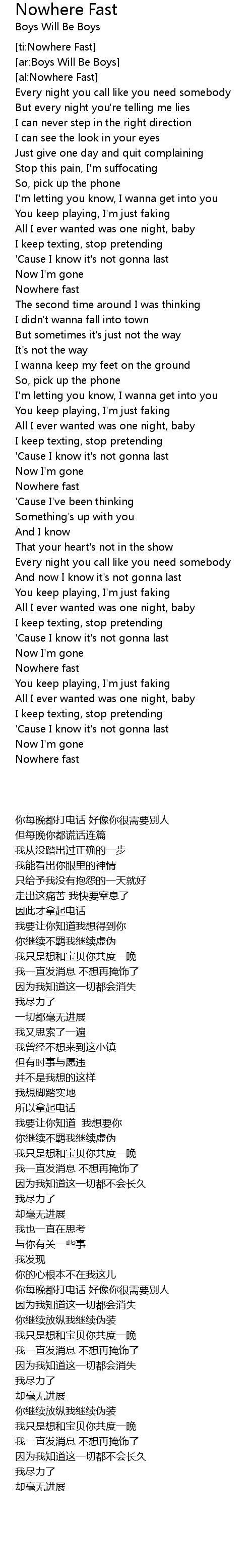 [ti:Nowhere Fast] |