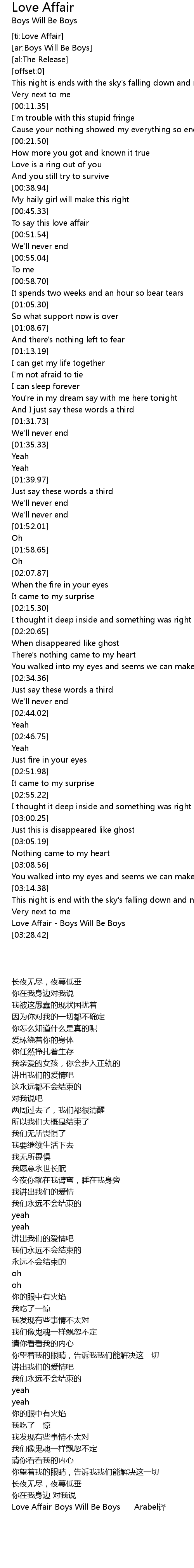 [ti:Love Affair] |