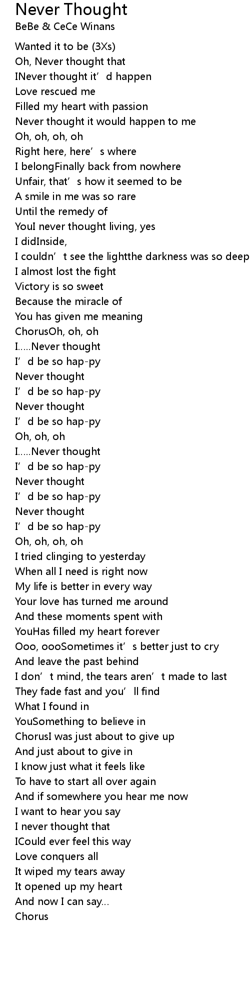 | Song | Never Thought |