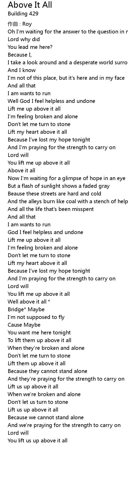 | You lift me up above it all | |